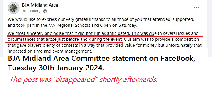 BJA Midland Area Committee “official excuse” on social media, despite the amount of registrations being held by the organiser’s son’s company.