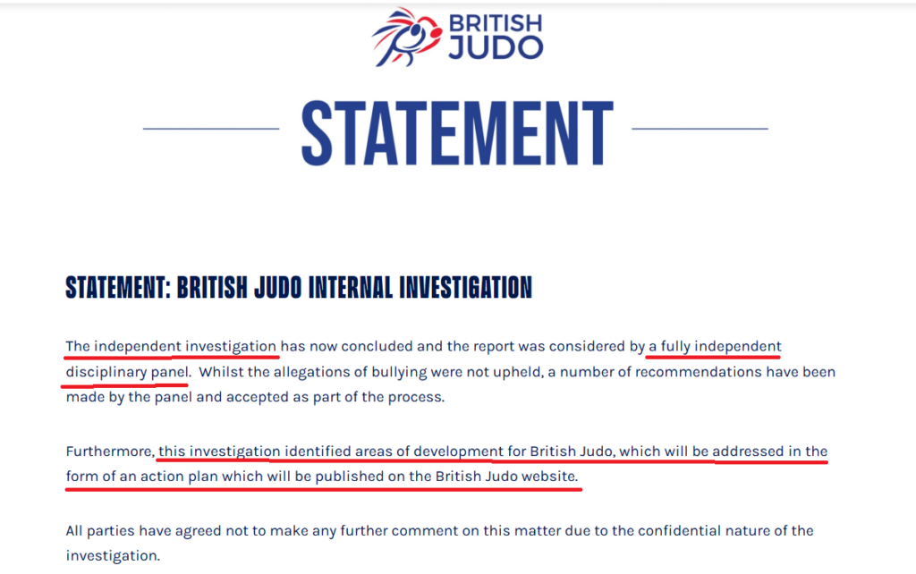 After over 600 days of British Judo Association Ltd “processing” a bullying complaint made by Lulu Piovesana and 2 others, against BJA Olympic Coach, Jamie Johnson, and Olympian Judoka, Lucy Renshall.